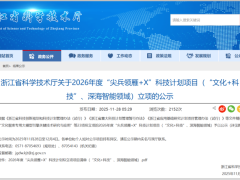 近日,浙江省科技廳發(fā)布了2026年度“尖兵領(lǐng)雁+X”科技計(jì)劃擬立項(xiàng)項(xiàng)目清單(“文化+科技”、深海智能領(lǐng)域)。其中由華數(shù)傳媒(...