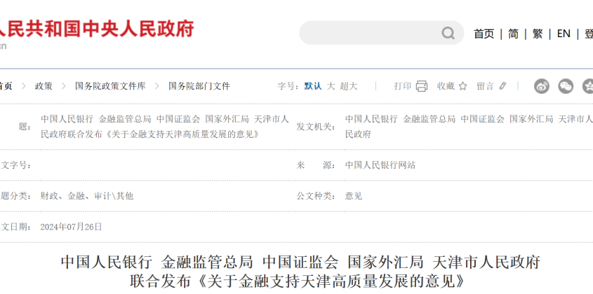 投資界(ID:pedaily2012)8月5日消息,近日,中國人民銀行、金融監(jiān)管總局、中國證監(jiān)會、國家外匯局、天津市人民政府聯(lián)合發(fā)布...