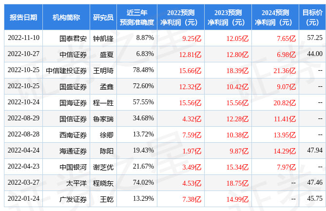 最新盈利預(yù)測(cè)明細(xì)如下: