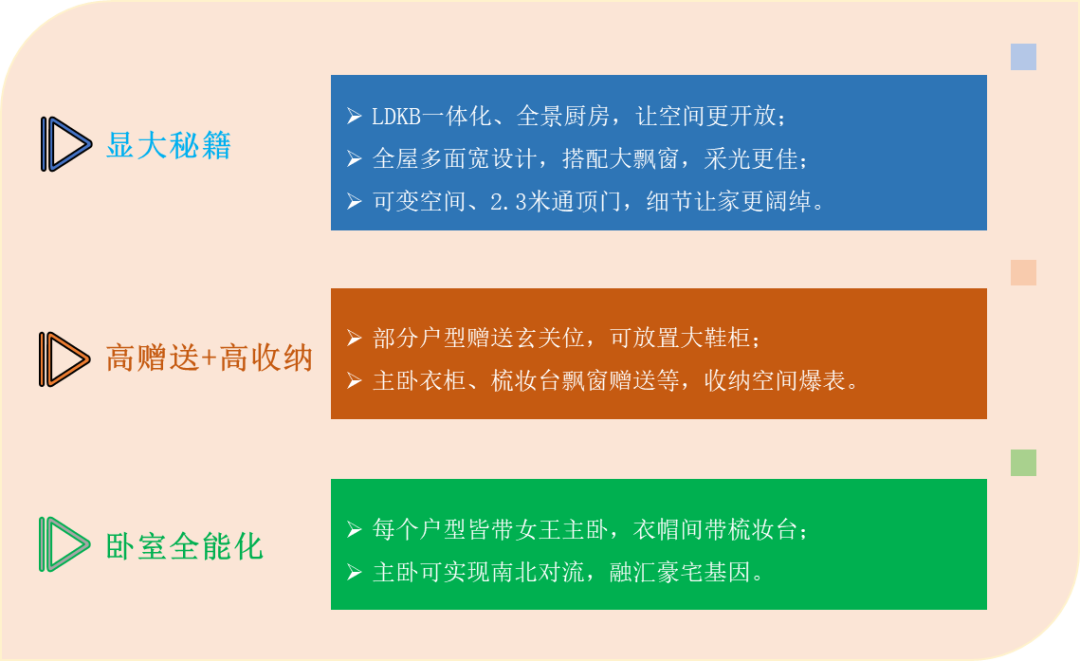 在產(chǎn)品設(shè)計方面,保利華南從未停止對客戶需求的深度研究并且不斷推陳出新,迭代產(chǎn)品。如三龍灣保利和頌項(xiàng)目,建面約86-143平戶型里,每一款戶型都做了全面升級,概括起來,共有三大“硬核魔法”: