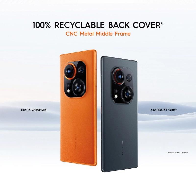 傳音 Tecno Phantom X2 Pro 有橙色(回收塑料)、灰色版本,傳音 Tecno Phantom X2 有灰色和銀色版本。