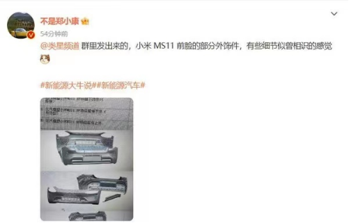 近日,一名擁有近50萬(wàn)粉絲的微博汽車(chē)博主“不是鄭小康”在微博發(fā)布一則關(guān)于小米MS11車(chē)型的圖片,主要展示了小米汽車(chē)保險(xiǎn)杠、小米MS11的裝飾件以及小米與北汽模塑相關(guān)合作細(xì)節(jié)等。