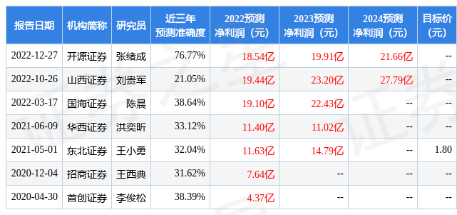 數(shù)據(jù)中心根據(jù)近三年發(fā)布的研報數(shù)據(jù)計算,開源證券張緒成研究員團(tuán)隊對該股研究較為深入,近三年預(yù)測準(zhǔn)確度均值為76.77%,其預(yù)測2022年度歸屬凈利潤為盈利18.54億,根據(jù)現(xiàn)價換算的預(yù)測PE為19.62。