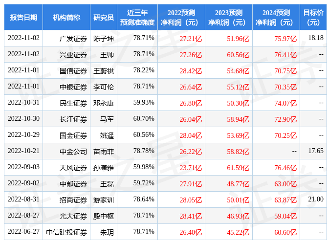 最新盈利預(yù)測明細如下: