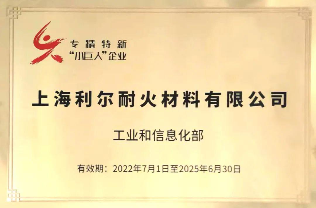 上海利爾(603639)耐火材料有限公司作為2022年國家級專精特新“小巨人”獲評企業(yè),在會上接受表彰并獲得由寶山區(qū)副區(qū)長翟磊頒發(fā)的獎牌。