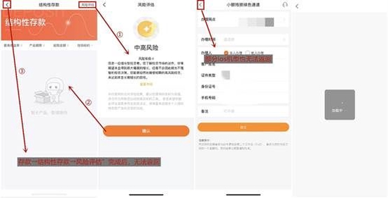 不過,App個別交互存在bug,只能強(qiáng)制退出App:一是,“存款→結(jié)構(gòu)性存款→風(fēng)險評估”完成后,無法返回;二是,部分IOS客戶端“網(wǎng)點查詢→小額殘損綠色通道”無法返回。