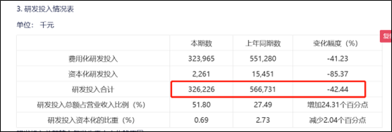 需要指出的是,在需求放緩之際,公司大幅砍掉研發(fā)預(yù)算也難擋虧損。2022年半年報顯示,公司研發(fā)投入相比上一年縮減42.44%,研發(fā)投入由上半年5.67億元降低至3.26億元。