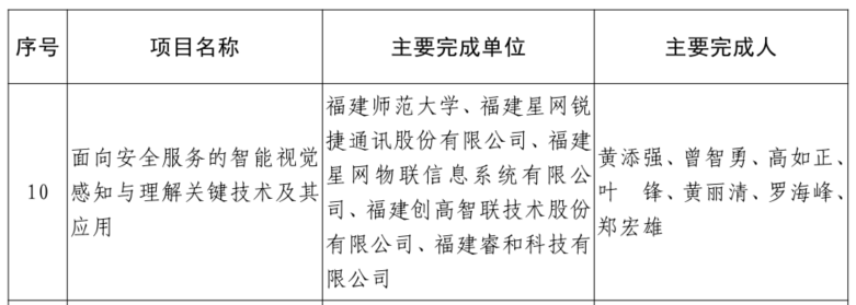 近日,福建省政府公布了2021年度省科學技術(shù)獎勵結(jié)果。由“福建星網(wǎng)銳捷(002396)通訊股份有限公司、福建星網(wǎng)物聯(lián)信息系統(tǒng)有限公司、福建師范大學”等單位共同參與的“面向安全服務(wù)的智能視覺感知與理解關(guān)鍵技術(shù)及其應(yīng)用”項目,榮獲福建省科學技術(shù)進步二等獎。