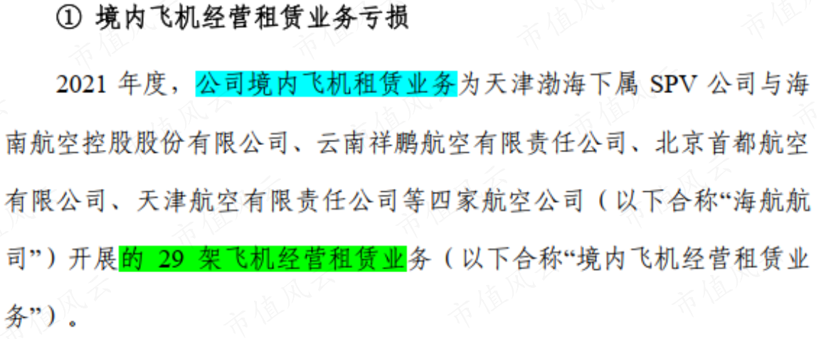 但有一個細節(jié)也不能忽略:根據(jù)渤海租賃2021年年報問詢回復,其在境內開展飛租業(yè)務的飛機29架,僅占當年末飛機數(shù)量的3.0%。
