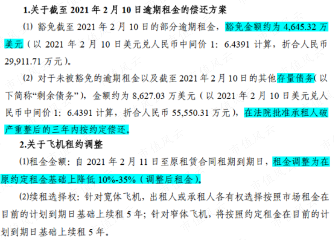 且相關租賃業(yè)務均參與了國內相關航空公司的債務重整,給予了租金豁免、存量債務延期支付、租金下調等諸多優(yōu)惠。