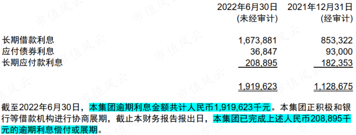 3、深陷債務危機,單違約利息近20億