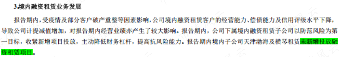 也就是說,如果有反轉希望的話,首先要排除的就是連新項目都不再投放的境內融資租賃業(yè)務。