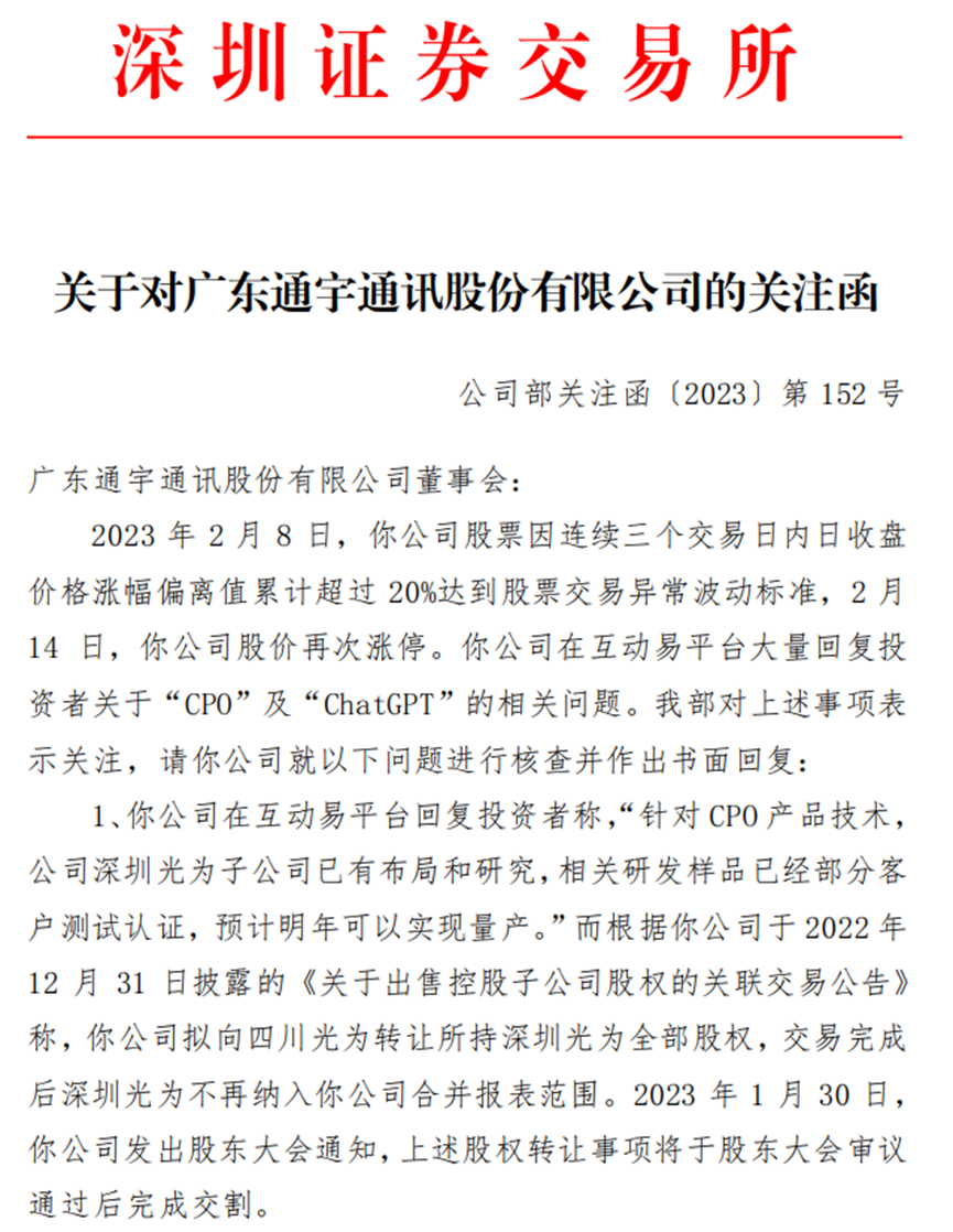 通宇通訊關(guān)注函,圖源:深交所網(wǎng)站