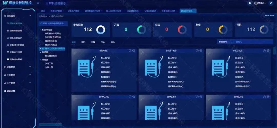 通過這一系統(tǒng)的應(yīng)用,只需要在屏幕上即可一覽車間所有焊機的實時工作狀態(tài),并實現(xiàn)焊接全生命周期的監(jiān)測和管理,實現(xiàn)焊縫實名制管理、焊接質(zhì)量追溯、焊接過程遠程監(jiān)控和焊接大數(shù)據(jù)分析,同時為管理者對人員和設(shè)備績效的考核、焊接工藝質(zhì)量分析、生產(chǎn)過程的資源調(diào)度優(yōu)化、設(shè)備的運行維護提供重要的支撐數(shù)據(jù)。