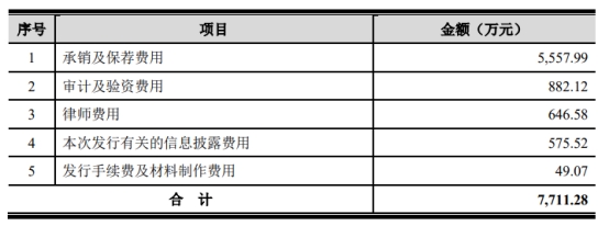 德馬科技發(fā)行費(fèi)用總額為7,711.28萬元,其中光大證券獲得承銷及保薦費(fèi)用5,557.99萬元。