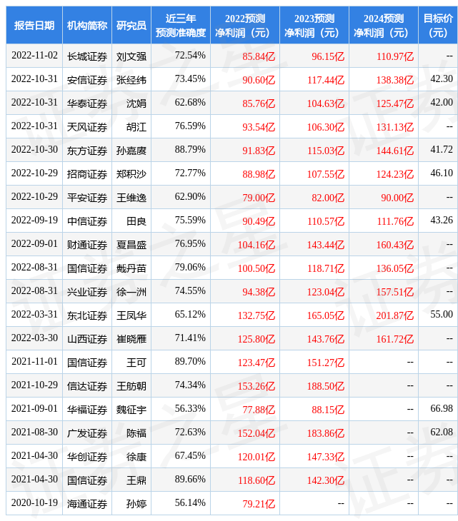 數(shù)據(jù)中心根據(jù)近三年發(fā)布的研報(bào)數(shù)據(jù)計(jì)算,國(guó)信證券王可研究員團(tuán)隊(duì)對(duì)該股研究較為深入,近三年預(yù)測(cè)準(zhǔn)確度均值高達(dá)89.7%,其預(yù)測(cè)2022年度歸屬凈利潤(rùn)為盈利123.47億,根據(jù)現(xiàn)價(jià)換算的預(yù)測(cè)PE為16.8。