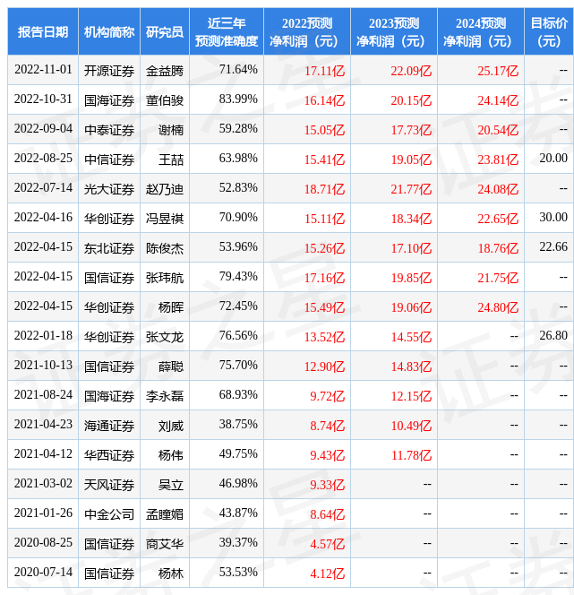 以下是詳細(xì)的盈利預(yù)測(cè)信息: