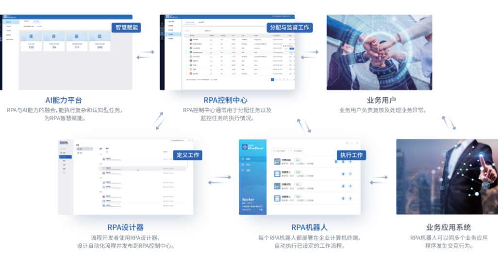 天喻BlueDocerRPA深度融合自研人工智能技術(shù),可模擬人在數(shù)字化設(shè)備中的操作,進(jìn)行復(fù)雜場景的智能決策,減少人為重復(fù)、繁瑣、大批量的工作任務(wù),真正滲透到企業(yè)的財務(wù)管理、運營管理、客服服務(wù)、人力資源、風(fēng)控內(nèi)審以及進(jìn)銷存等應(yīng)用場景,提升業(yè)務(wù)流程的自動化、數(shù)字化和智能化水平。
