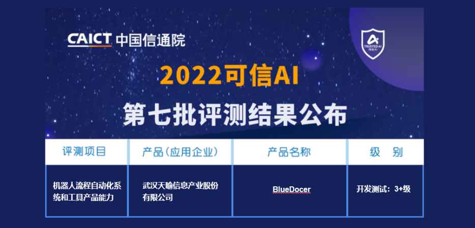 近日,中國信通院公布第七批“可信AI”評測結(jié)果,天喻BlueDocerRPA順利通過該測評,并獲得本次測評“3+級”,意味著天喻信息(300205)在RPA產(chǎn)品技術(shù)方面的研發(fā)實力已獲國家級認(rèn)可,應(yīng)用成熟度已達(dá)到行業(yè)領(lǐng)先水平。