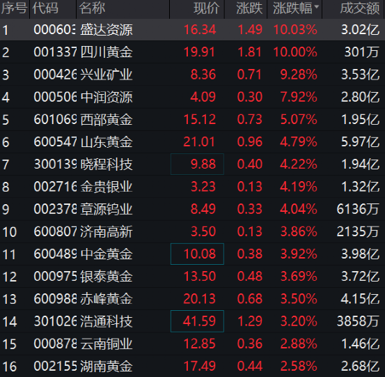 盤面上,油氣、航運、網(wǎng)絡(luò)安全等概念股回調(diào);黃金股持續(xù)走高。