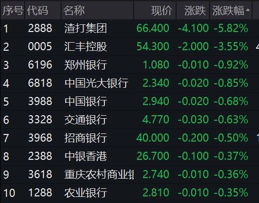 受美國銀行倒閉影響,香港銀行股開盤大跌:渣打銀行跌近6%,匯豐控股跌超3.5%。