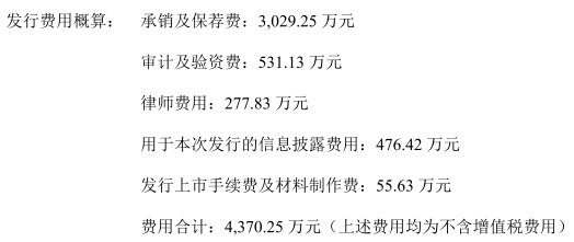永和股份本次公開發(fā)行新股的發(fā)行費用總額為4370.25萬元(不含稅),其中中信證券股份有限公司獲得承銷及保薦費用3029.25萬元。