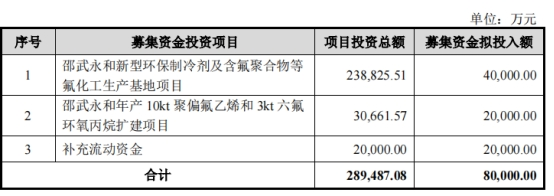 永和股份2021年6月29日披露的招股書顯示,公司擬募集資金4.18億元,用于邵武永和新型環(huán)保制冷劑及含氟聚合物等氟化工生產(chǎn)基地項目。
