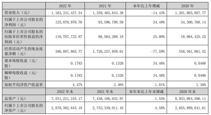 2022年,銀星能源營業(yè)收入11.63億元,同比減少14.43%;歸屬于上市公司股東的凈利潤1.26億元,同比增長34.49%;歸屬于上市公司股東的扣除非經常性損益的凈利潤1.11億元,同比增長25.00%;經營活動產生的現(xiàn)金流量凈額3.87億元,同比減少77.59%。