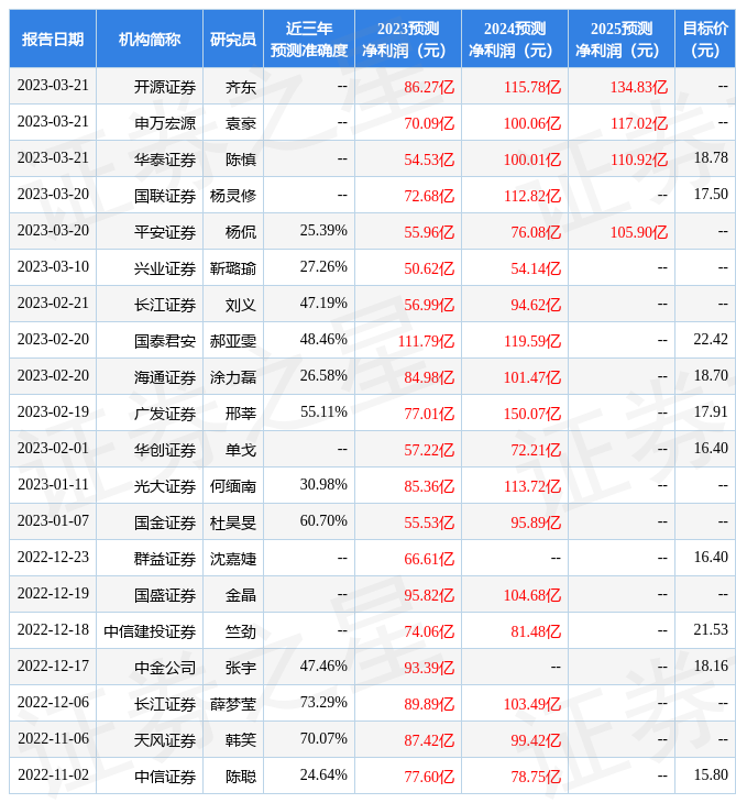 最新盈利預(yù)測(cè)明細(xì)如下: