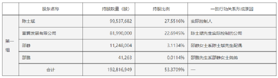 陳士斌和邵靜實(shí)際上一致行動人,兩人為夫妻關(guān)系,加上富騰發(fā)展和邵靜弟弟邵鵬的股份,陳士斌夫婦控制的股份比例為53.37%。