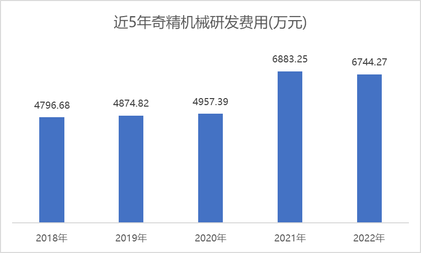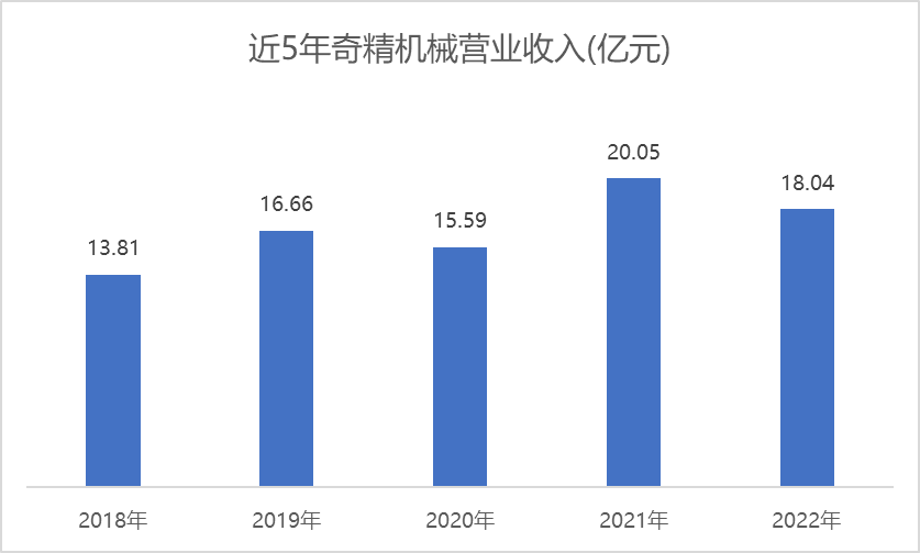 將時間線拉長,近5年,奇精機械營收保持增長態(tài)勢,2021年首次突破20億元,2022年營收同比下降也與2021年的高基數(shù)有關。