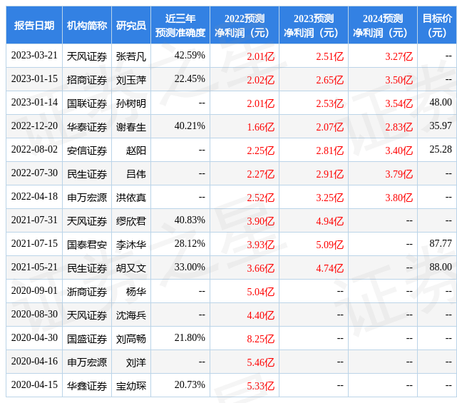 最新盈利預(yù)測(cè)明細(xì)如下: