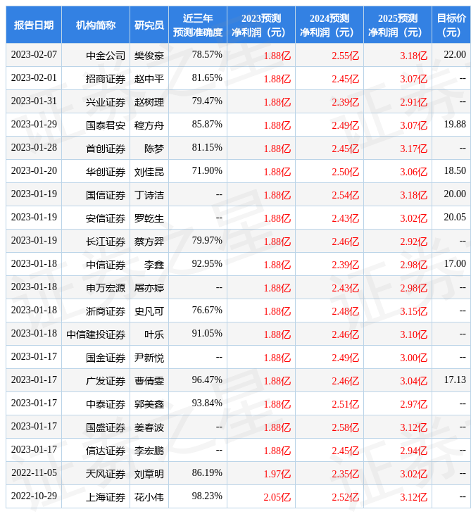 最新盈利預(yù)測明細(xì)如下:
