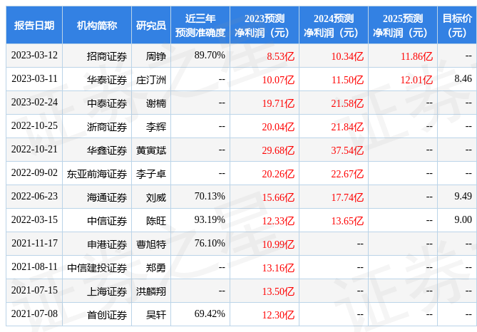 數(shù)據(jù)中心根據(jù)近三年發(fā)布的研報數(shù)據(jù)計算,中信證券陳旺研究員團隊對該股研究較為深入,近三年預(yù)測準確度均值高達93.19%,其預(yù)測2023年度歸屬凈利潤為盈利12.33億,根據(jù)現(xiàn)價換算的預(yù)測PE為10.17。