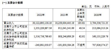 容百科技(688005)披露2022年年報(bào),營(yíng)業(yè)收入301.23億元,同比增長(zhǎng)193.62%;凈利潤(rùn)13.53億元,同比增長(zhǎng)48.54%。