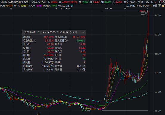 自1月18日開始,該股便開啟上漲之勢(shì),截至目前,該股已經(jīng)累計(jì)漲超257%。