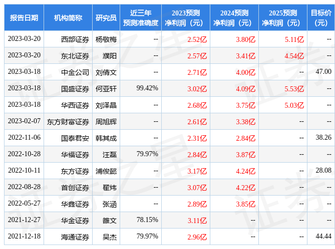 最新盈利預(yù)測明細如下: