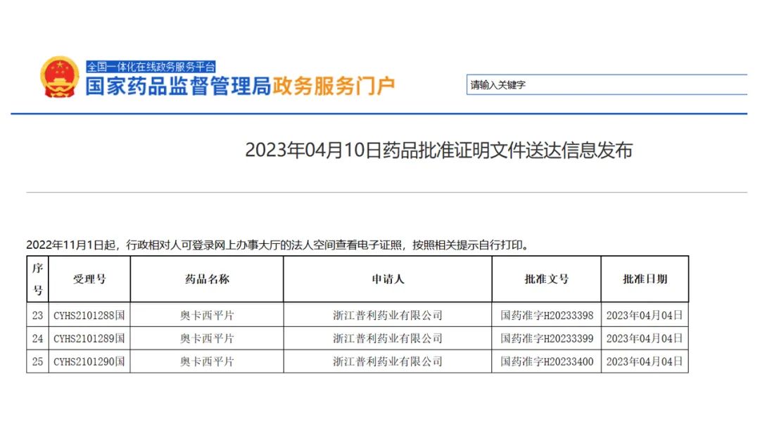 4月10日,浙江普利藥業(yè)收到國家藥監(jiān)局簽發(fā)的普利舒奧 奧卡西平片上市許可,視同通過仿制藥一致性評價,成為國內(nèi)本品種首家過評企業(yè)。