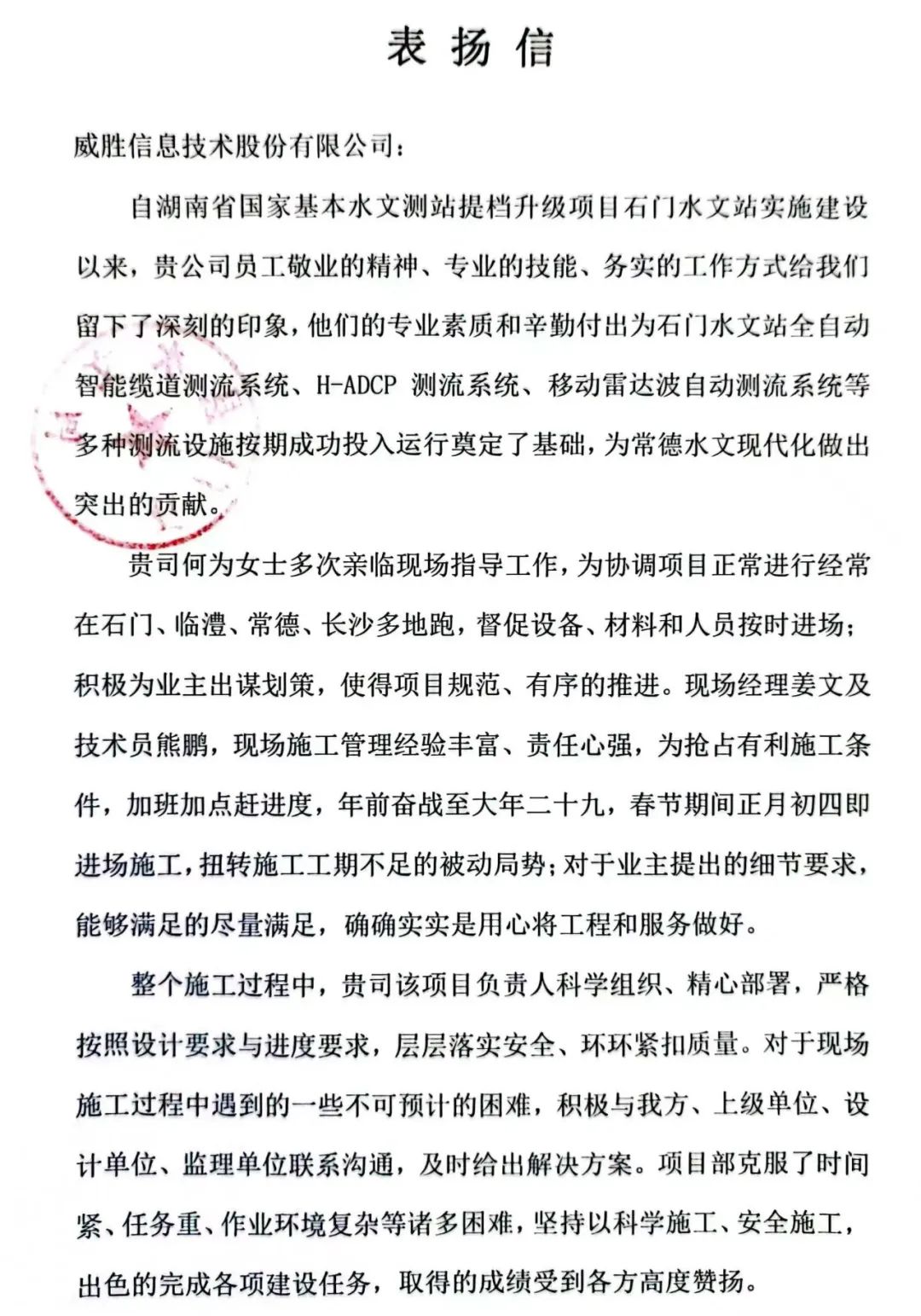 近日,由威勝信息技術股份有限公司承建的湖南省國家基本水文測站提檔升級項目(常德)迎來首次“大考”,省水文中心黨委委員、副主任顧慶福,站網建設部聶紅勝一行到常德水文中心督導檢查提檔升級項目建設工作,常德水文中心黨委書記、主任李炳輝及相關部門負責人陪同。在現場,威勝信息的承建工作和全自動水文測流系統(tǒng)得到各方的高度認可和一致好評。