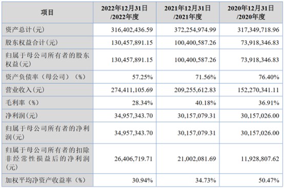 財務(wù)方面,于2020年度、2021年度及2022年度,公司實現(xiàn)營業(yè)收入分別約為1.52億元、2.09億元、2.74億元。公司凈利潤分別約為3015.70萬元、3015.71萬元、3495.73萬元人民幣。