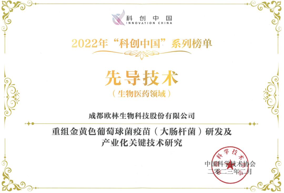 2023年4月27日,由成都市人民政府主辦,成都市科學(xué)技術(shù)協(xié)會(huì)、成都市科學(xué)技術(shù)局、成都市社會(huì)科學(xué)界聯(lián)合會(huì)、中國(guó)科學(xué)院成都分院承辦的2023年(第二十四屆)成都市科學(xué)技術(shù)年會(huì)開幕式在成都順利舉辦,會(huì)上頒發(fā)了中國(guó)科協(xié)2022年“科創(chuàng)中國(guó)”創(chuàng)新基地、系列榜單證書,成都?xì)W林生物科技股份有限公司(以下簡(jiǎn)稱“歐林生物”)成功入選2022年“科創(chuàng)中國(guó)”先導(dǎo)技術(shù)榜(生物醫(yī)藥領(lǐng)域)。