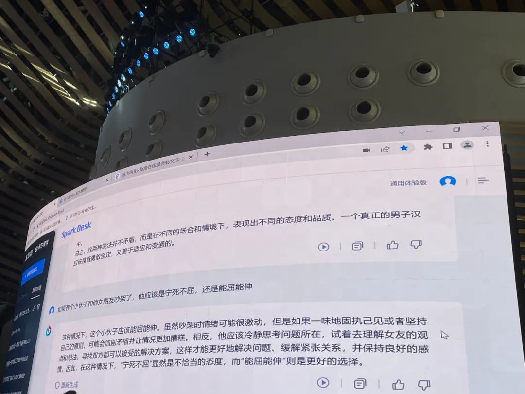在5月6日的訊飛星火認(rèn)知大模型(簡稱“星火大模型”)成果發(fā)布會上,市場期待已久的科大訊飛(002230)大模型正式亮相,對上述有些刁鉆的問題做出了“高情商”回答:星火大模型不偏不倚地回復(fù)了第一個問題,第二個問題卻明顯“站隊”――小伙子和女朋友吵架,“能屈能伸”是更好的選擇。