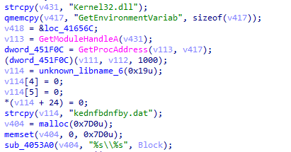 5、使用SetWindowsHookExW注冊(cè)鍵盤鉤子,將捕獲到的鍵盤記錄以文本的方式保存在%temp%目錄下的kednfbdnfby.dat文件中。