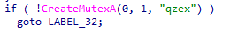 4、創(chuàng)建互斥體名為“qzex”,保證木馬自身單實(shí)例運(yùn)行。