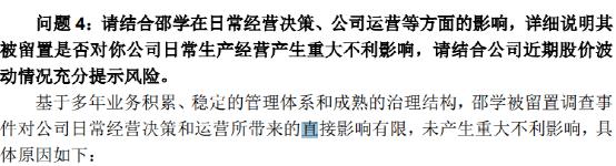 對此,公司解釋稱,綜合考慮國家法律法規(guī)規(guī)定、公司運(yùn)營實(shí)際狀況、邵學(xué)履職實(shí)際情況等方面因素,為保障公司平穩(wěn)運(yùn)營,公司未對邵學(xué)被實(shí)施留置事項(xiàng)進(jìn)行對外披露。