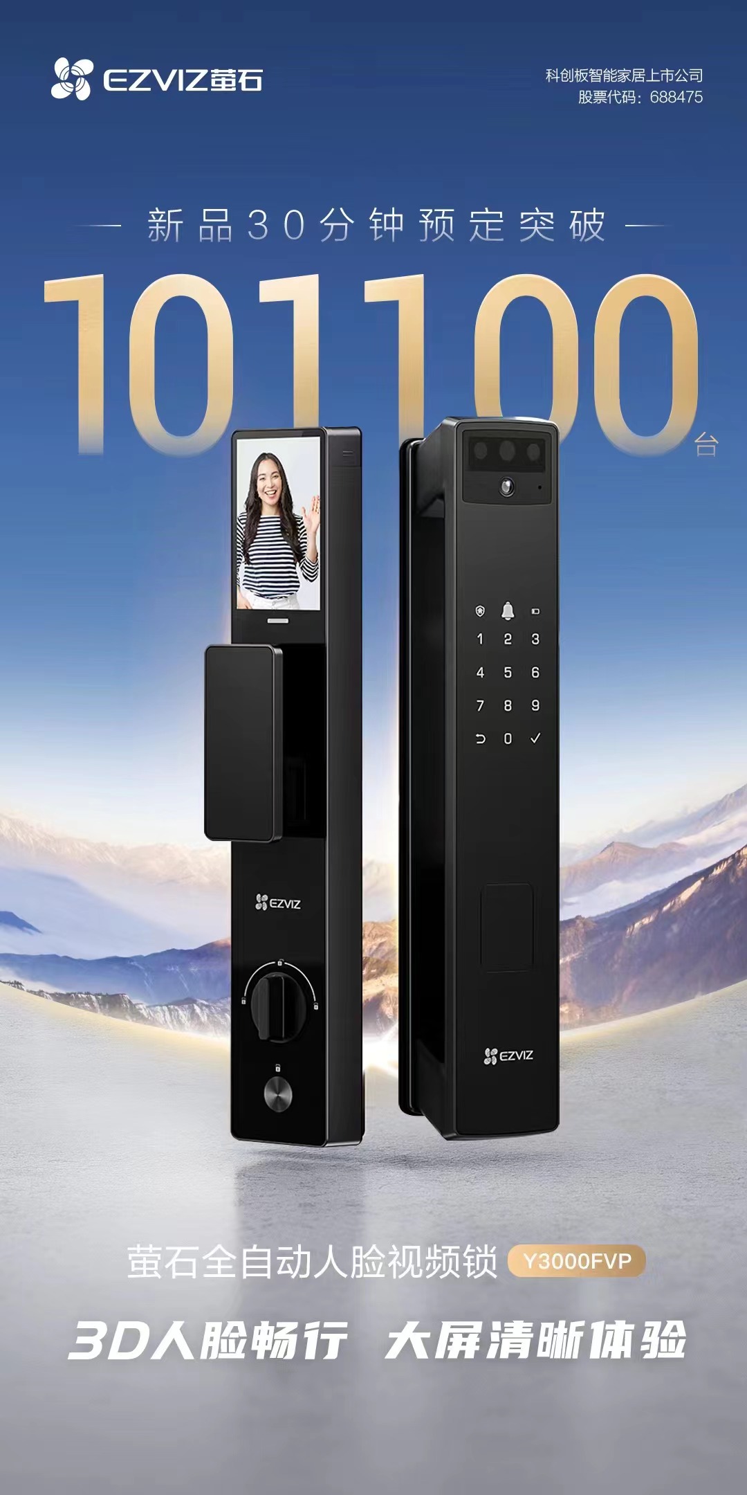 3月31日下午,螢石網(wǎng)絡(luò)(688475)傳出消息,在當(dāng)日下午公司舉行的渠道合作伙伴大會(huì)上,公司螢石智能鎖訂貨火爆,其中一款Y3000FVP(螢石全自動(dòng)人臉視頻鎖)單品,30分鐘預(yù)定突破10.11萬臺(tái)。