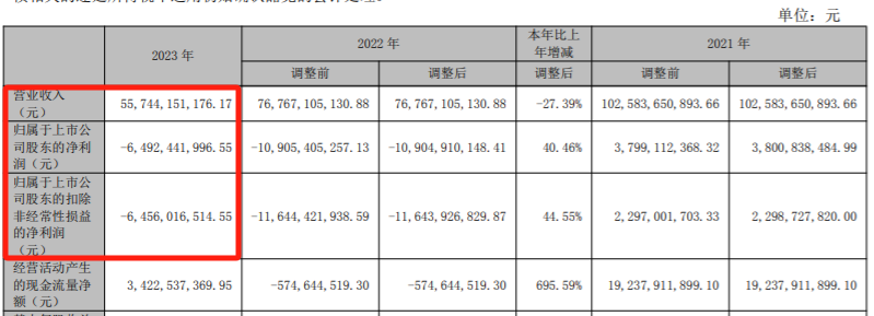 在業(yè)績(jī)方面,華僑城A在2023年實(shí)現(xiàn)營(yíng)業(yè)收入557.44億元,同比下降27.39%;歸母凈利潤(rùn)-64.92億元,同比增長(zhǎng)40.46%。