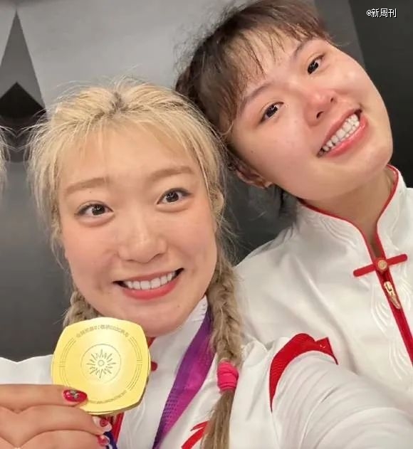 2023年亞運(yùn)會(huì)中國(guó)女籃奪得冠軍,李夢(mèng)手拿金牌。(圖/李夢(mèng)微博)